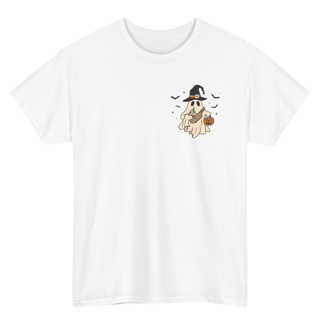 Even the afterlife runs on caffeine. This incredibly soft tee features a chill ghost holding a mug of coffee and a pumpkin basket. It's the perfect uniform for trick-or-treating duty or simply surviving spooky season.